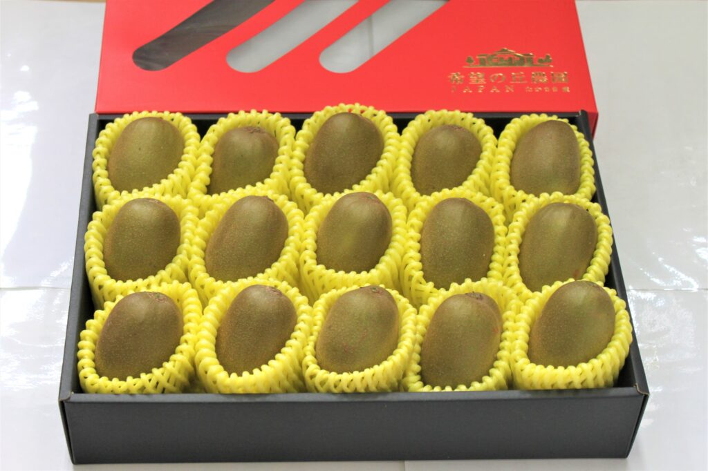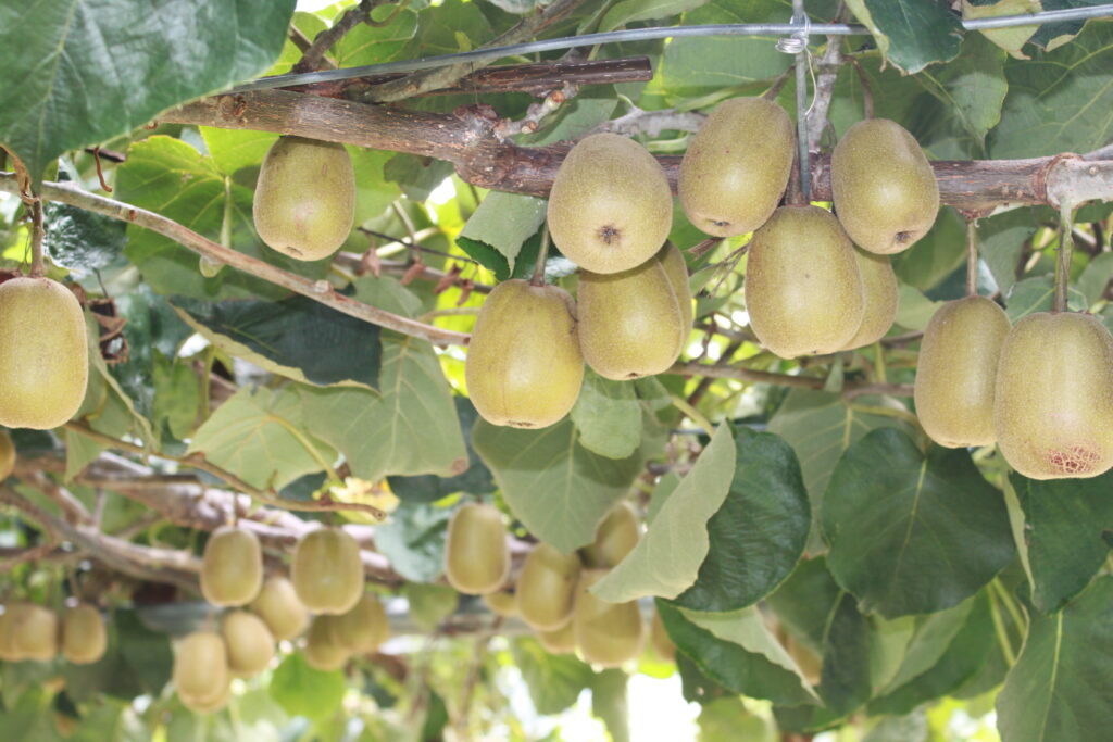 キウイフルーツを収穫してください。このキウイフルーツはお持ち帰り用です。 - つぶべりーソフトクリームの受け取り
